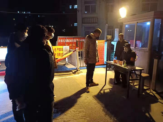 2020年2月10日夜間,集團(tuán)公司副總王俊杰在通皓物業(yè)相關(guān)人員的陪同下到物業(yè)公司下轄的公租房、安置房小區(qū)督查夜間值守情況,看望慰問奮戰(zhàn)在疫情防控一線的值守人員。